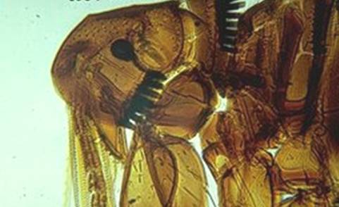 The head and thorax of a cat flea illustrating the teeth of the genal