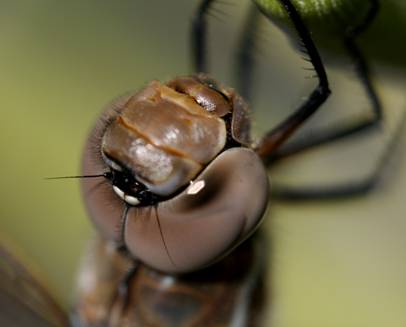 Figure 8B. Dragonfly head with huge compound eyes and hair-like antennae.