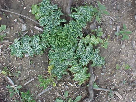 and mottled white around the veins. Mature plants are stiff, 2 to 6 feet tall,